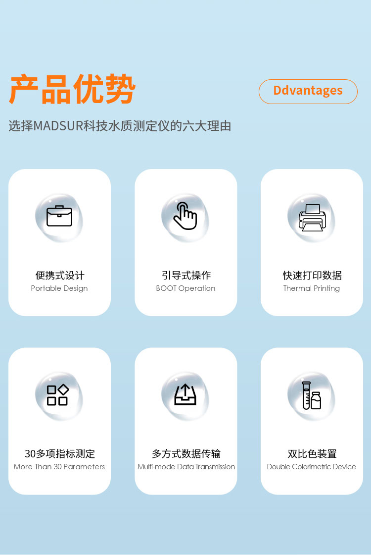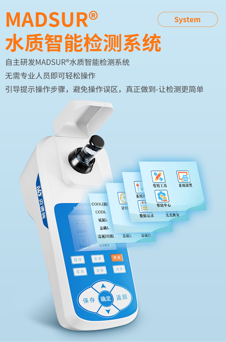 5、用户还可以自行开发用户程序和试剂,以适应不同场合不同水体状况。