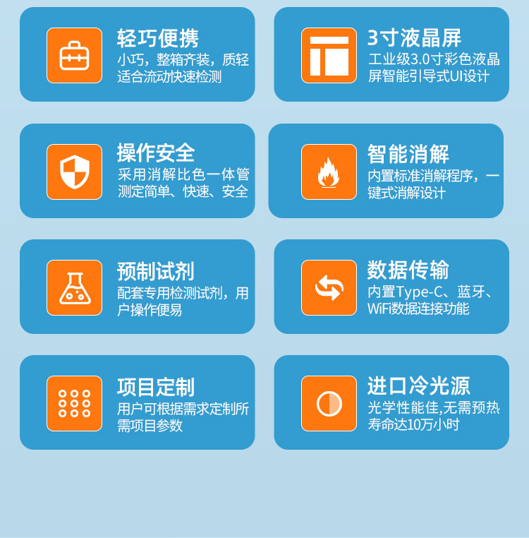 7、操作安全:采用消解比色一体管,测定简单、快速、安全。