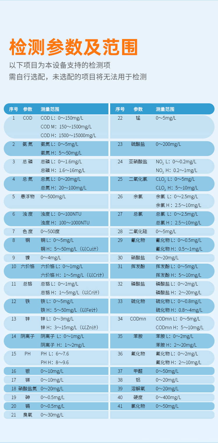 5、用户还可以自行开发用户程序和试剂,以适应不同场合不同水体状况。